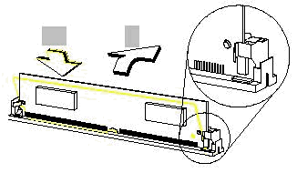 Note: A SIMM fits only in one direction. If you slip in a SIMM but it does not completely fit, you may have inserted it the wrong way. Reverse the orientation of the SIMM.