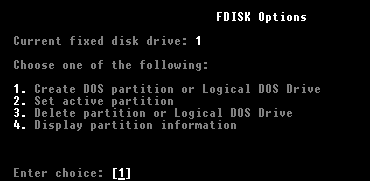 To recreate partitions, at the main menu type "1" and press "Enter" to create a partition or logical DOS drive. If all the partitions have been deleted, the first one to create will be the C: partition. Its status will need to be made "Active" at that option. The size of each partition will need to be specified (less that 2GB). Then repeat the process with option "2", "Create Extended DOS Partition". If this partition is created with over 2GB, you will need to then choose option "3" in the "Create Partition" menu to create Logical DOS drives in the Extended DOS partition.