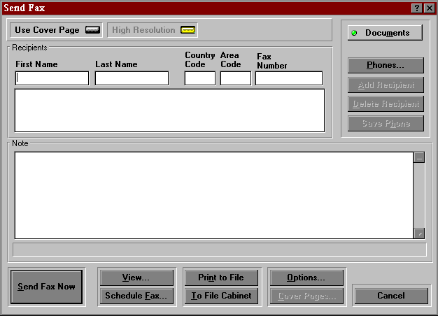 Enter the appropriate information and click on the "Send Fax" Button. This will launch a window similar to Figure #6 and the fax will be sent.