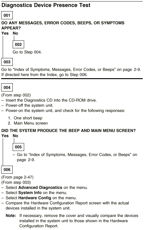 Aptiva - 2159 Diagnostics - Device presence test