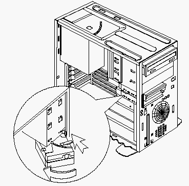 3. Align the top rail of the drive frame with the system chassis and swing inward until "click" to locked.