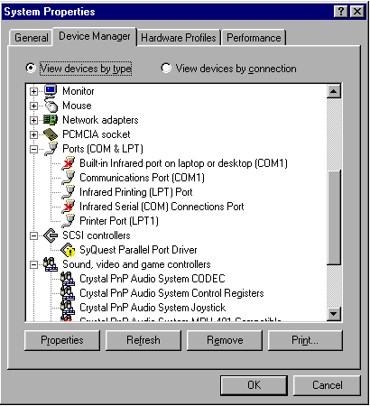 1. Open Device Manager (Start->Settings->Control Panel-> Double click on the System icon)