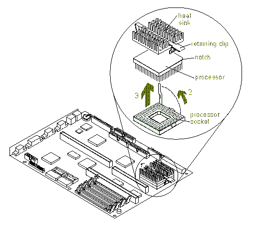 - To remove the processor: remove the processor retaining clip, raise the socket lever, remove the old processor, insert the upgrade processor, lower the socket lever firmly, then install the processor retaining clip.