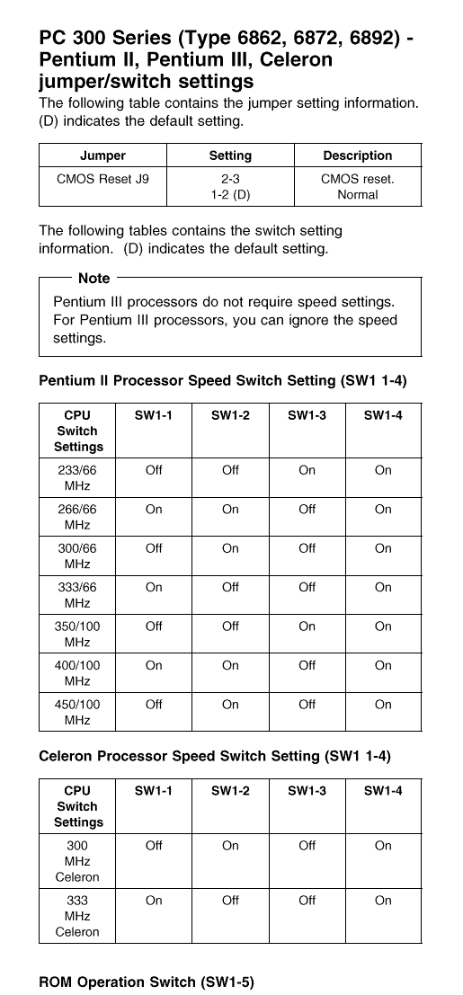 IBM PC300PL (Type 6862, 6872, 6892) - System Board Jumper Settings