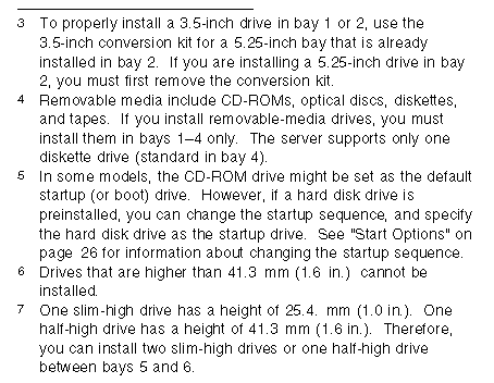 For information on the supported types of drives and their installation, see "Drive Specifications", "Preinstallation Steps (All Bays)", and http://www.pc.ibm.com/us/compat/ on the World Wide Web.