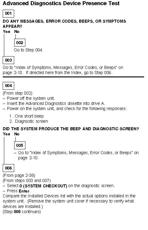 Aptiva - 2144/2168 (SL-F/H/I) Diagnostics - Advanced diagnostics device presence test