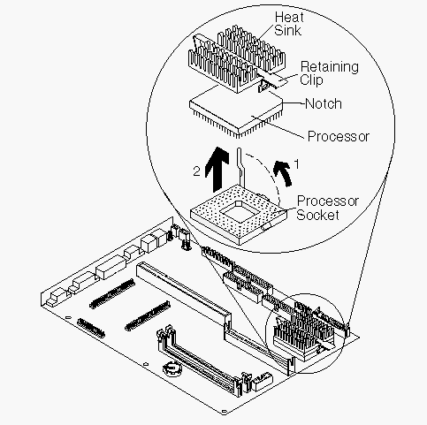 To remove the processor: remove the processor retaining clip, raise the socket lever, remove the old