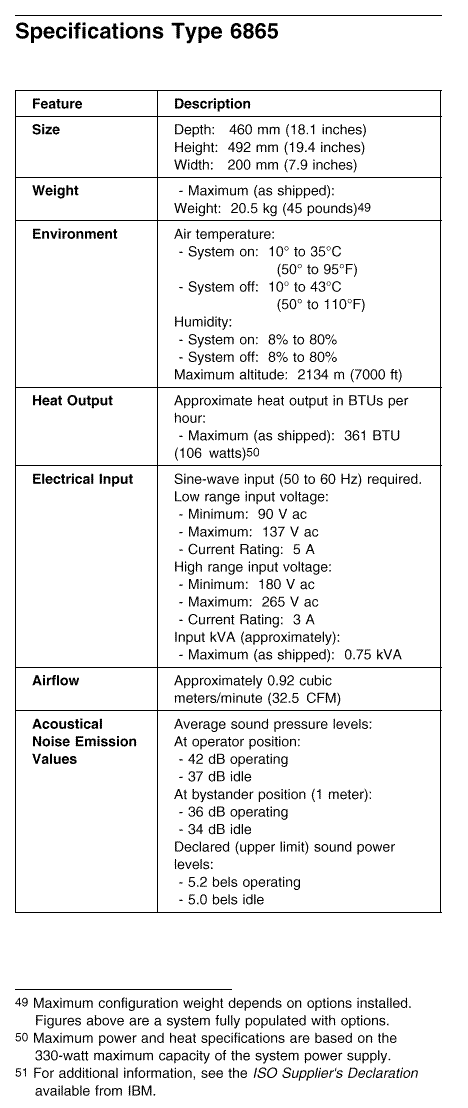 IBM IntelliStation Z Pro (Type 6865) - Type 6865 Specification