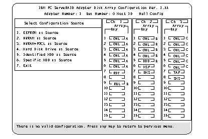 - EEPROM as Source copies configuration information from the adapter EEPROM to NVRAM and to all hard disk drives in a Rebuild or On-line state that are defined in the adapter EEPROM configuration.