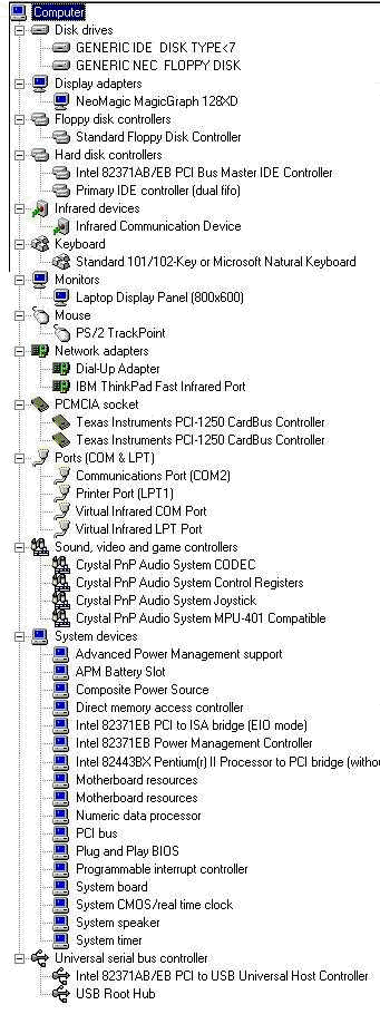 This is the default listing of Device Manager under Windows 98 for the ThinkPad 560Z