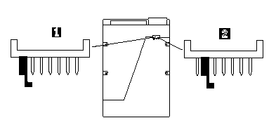 If additional drives are connected to the secondary hard disk drive connector, set the first drive connected to this connector as the master drive (1 in the following figures). If a second drive is connected to the secondary hard disk drive connector, set the jumpers as the slave drive (2 in the following figures). Ensure all software is set to recognize all installed drives.
