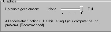 Have the user go to Start->Settings->Control Panel->System->Performance->Graphics and move the slider to the third or fourth position.