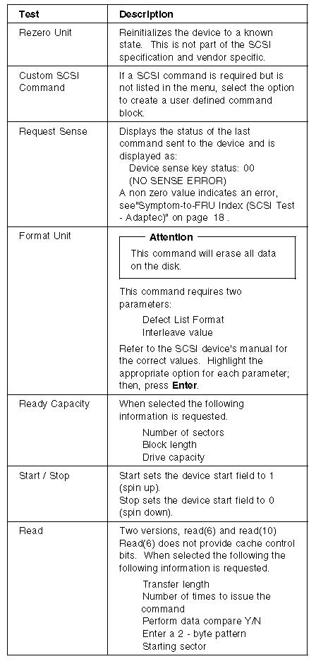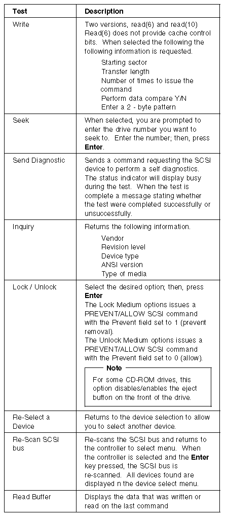 PCServer330 - Selecting a Test (Advanced Mode), Test Descriptions (Advanced Mode)