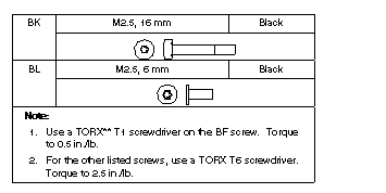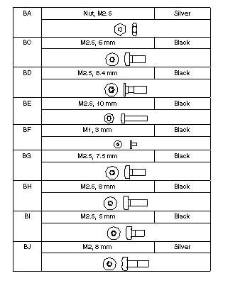 The letters in parentheses in the list indicate screw types. Consult the following screw size chart to match the letters to the correct screw type and size before replacing each screw.