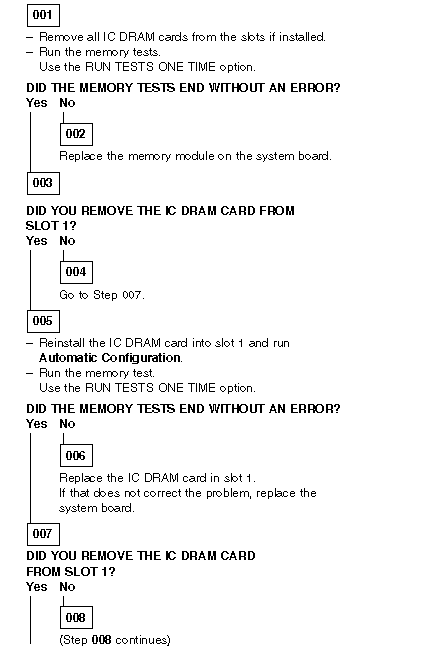 Customer diagnostics can eliminate defective memory so no memory error code appears at power-on reset. After you replace a defective memory module on the system board or IC DRAM card, run Automatic Configuration. Otherwise, the new memory will not be recognized. (If you have to run configuration with your own diskette, be sure the customer has all the correct option diskettes available.) Power-off the computer before removing or replacing parts.