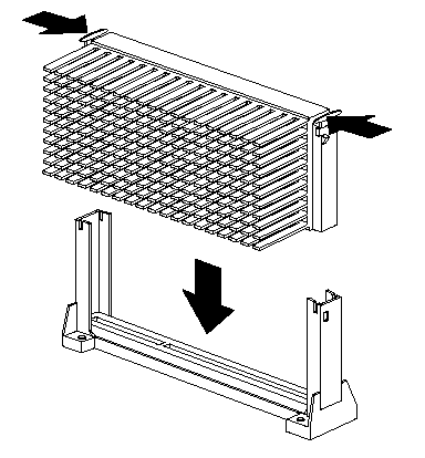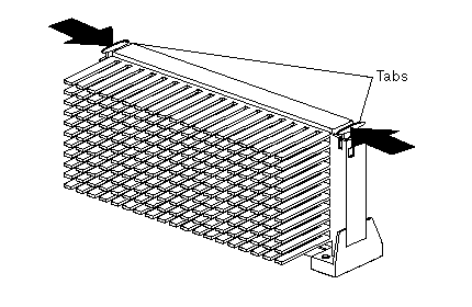 b. Place your index fingers on the small retainer tabs on the top of the microprocessor. Push in toward the microprocessor until the tabs release.