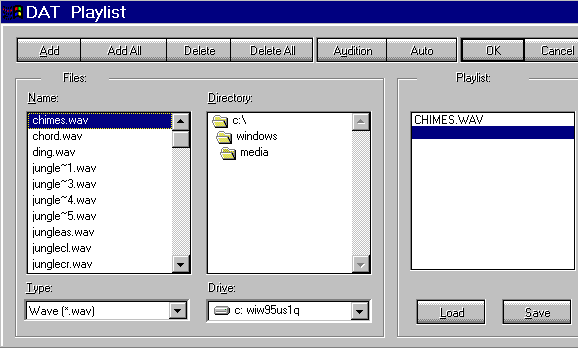 1. Click on Playlist Button on the lower left of the MIDI Player to bring up the MIDI Player Playlist Window. The MIDI Playlist is exactly like the DAT Playlist shown in figure 2 above.