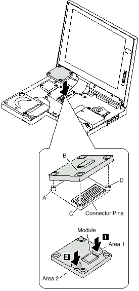 3. Place the CPU mini cartridge on the system board so the the screw holes align with posts A, B, C, and D on the system board.