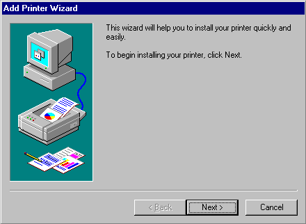 3. When the printer window opens, double-click on the "Add New Printer" icon which will start the Add Printer wizard and open the Add Printer Wizard dialog box shown in Figure 1. Click the "Next" button to start setting up the printer.
