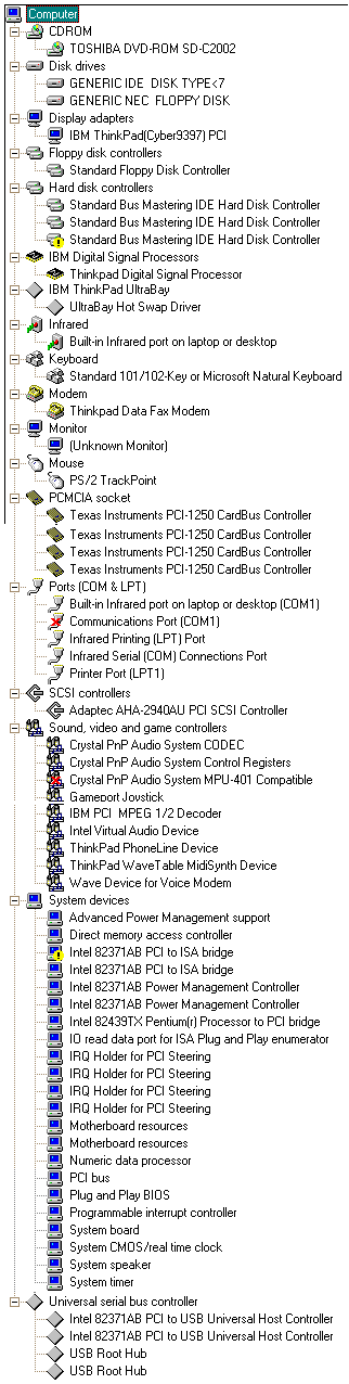 This is the Device Manager listing for a ThinkPad 770 (ACP model) with the DVD drive and Enhanced Video adapter installed.
