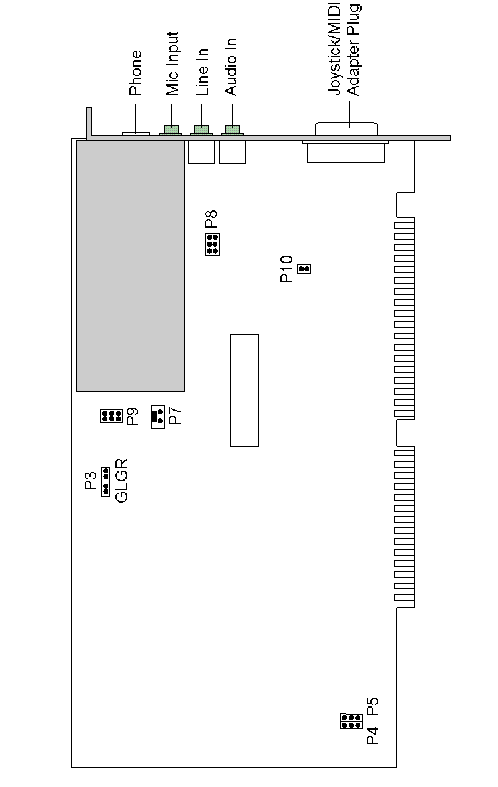 P4 and P5 are jumpered to I/O address CE3O. The I/O jumper setting can be changed to correct conflicts with other cards using I/O addresses or Joystick port settings.