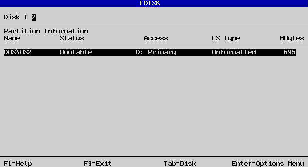 - At the FDISK Options Screen, enter choice "4" and press "Enter" key. This will bring you to the "Display Partition Information" screen. Under the "Partition" column you will find drive letters. On each line designated by a drive letter, check the column labeled "Mbytes." If this number is greater than 2,000, you have a partition greater than 2GB.