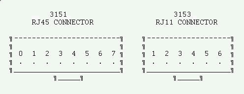 The 3151 and 3153 keyboards are not interchangeable. The following is a diagram of the modular RJ keyboard connector: