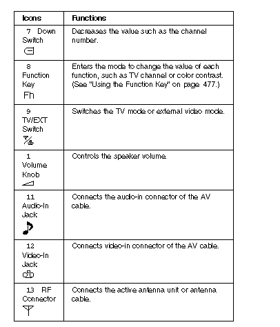 The following figure and table show the names and functions of each part of the TV Tuner.