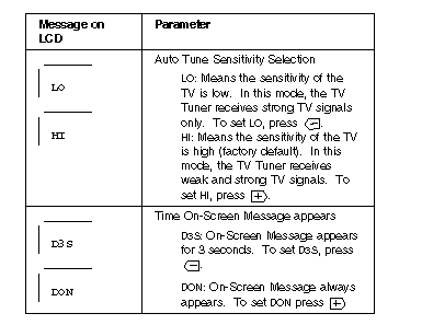 Each time you press the Function key ( ), one of the following messages (called On-Screen Message ) appears at the top left corner of the LCD. The changed values are automatically saved when you return to the TV Channel On-Screen message. The values are not saved when you power-off the TV Tuner without returning to this message.