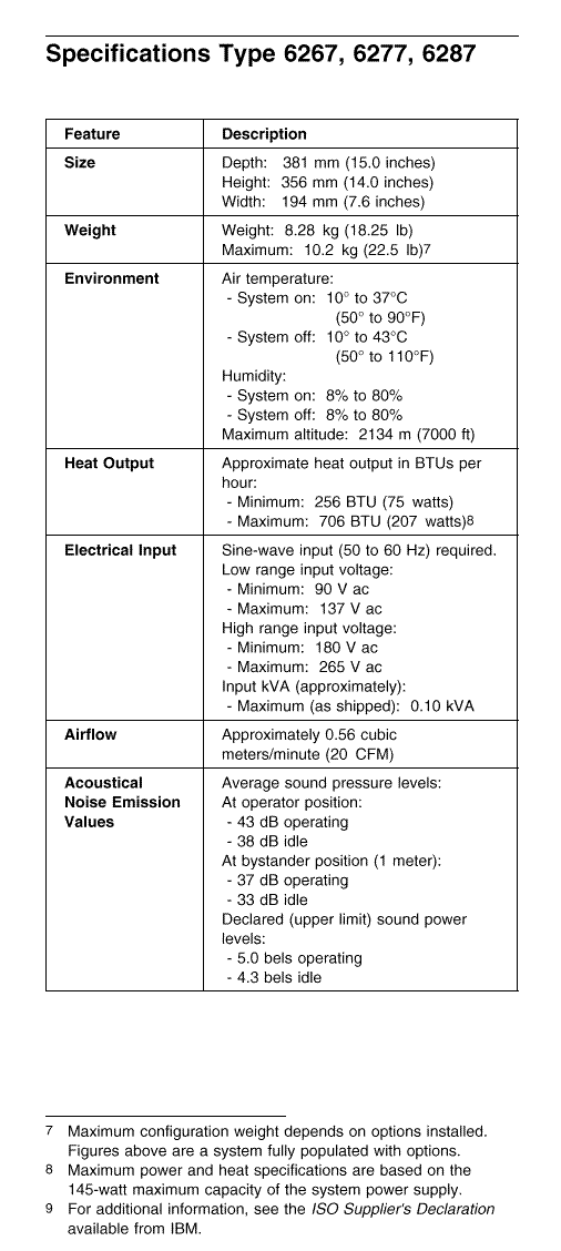 IBM PC300GL (Type 6267, 6277, 6287) - Specifications