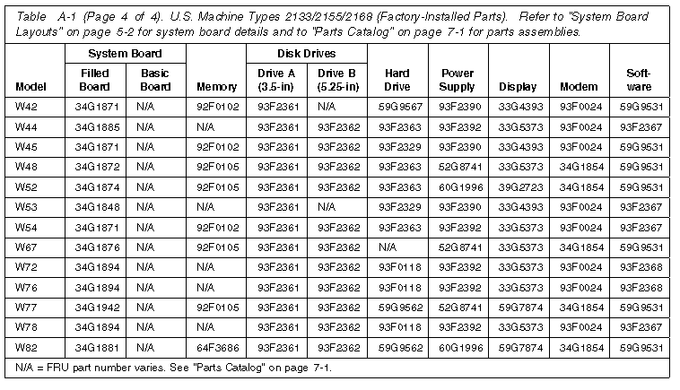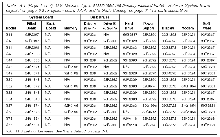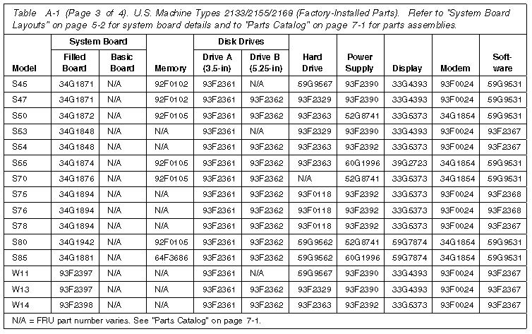 PS/1 - FRU Part Numbers for US M/T 2133, 2155, 2168