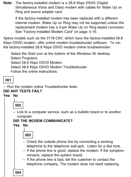 Aptiva - 2134/2176 Diagnostics - Modem