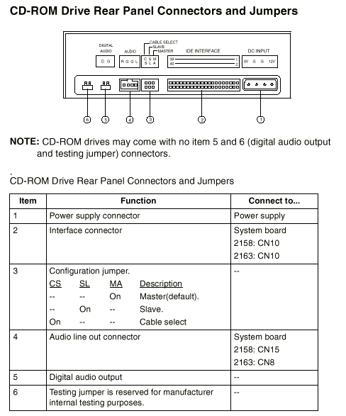 Aptiva - 2158/2163/2164 CD-ROM/DVD-ROM jumper settings