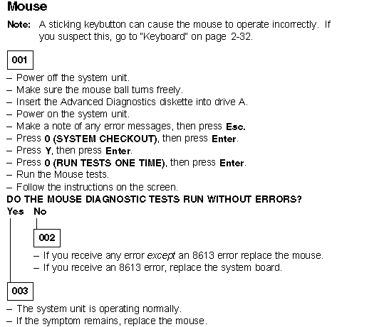 Aptiva - 2144/2168 (SL-F/H/I)Diagnostics - Mouse