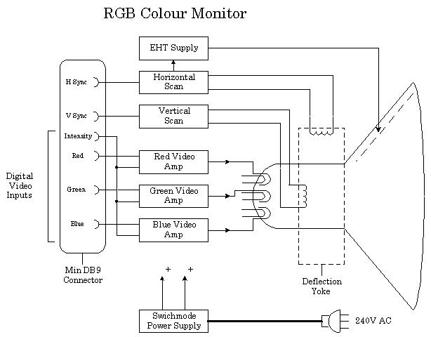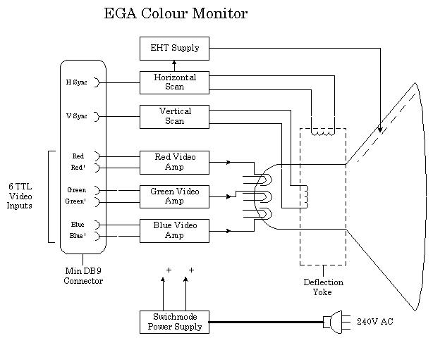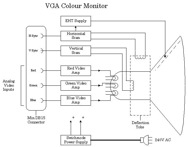 A typical block diagram of a VGA Colour Video Display Monitor.