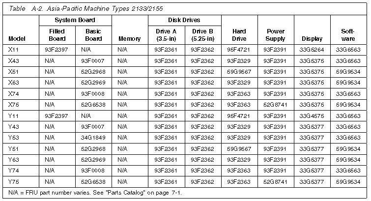 PS/1 - FRU Part Numbers for Asia Pacific M/T 2133/2155