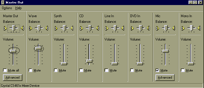 - Double-click Volume Control. The image below is what will be seen, highlighted are two sliding volume controls (Master Out & Wave) that are responsible for communication volume settings.