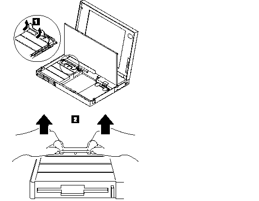 Remove the diskette drive exactly as shown in the figure. Do not apply any extra force to the top surface of the diskette drive. Make sure the media is removed, or the media and the drive may be damaged.