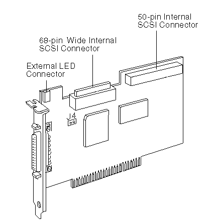 The red light emitting diode (LED) on the AHA-2940/2940W adapter lights up when the host adapter is performing activity on the SCSI interface or when other SCSI devices are using the SCSI bus. An external LED connector is provided on the adapter so you can attach a cable to an externally visible LED.