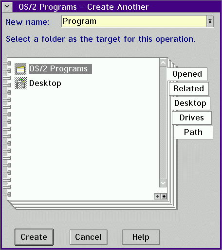 Double click OS/2 System and then double click to open the Templates folder. Here you will find templates to create all kinds of icons.