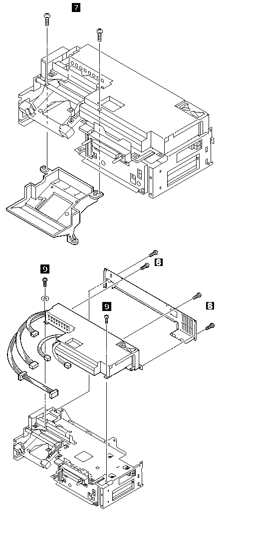 7 8 9 (Do not forget to install the washer on the left screw at replacement in step 9 .)