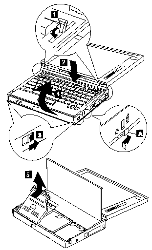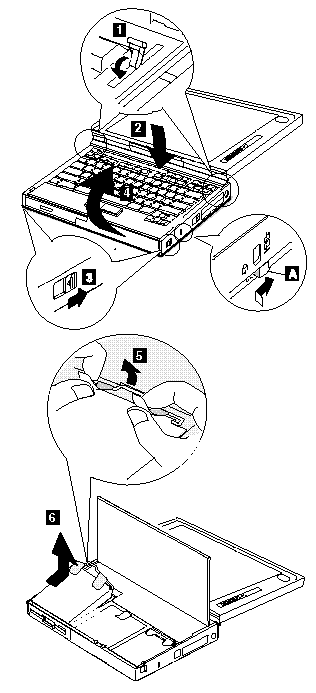 Note : Be careful that the computer does not fall backward when the battery pack is removed.