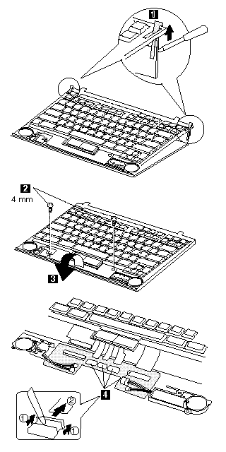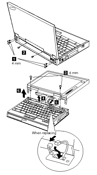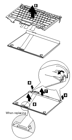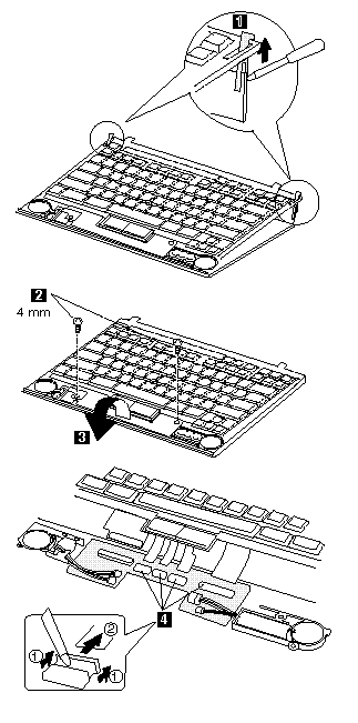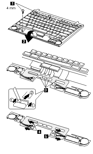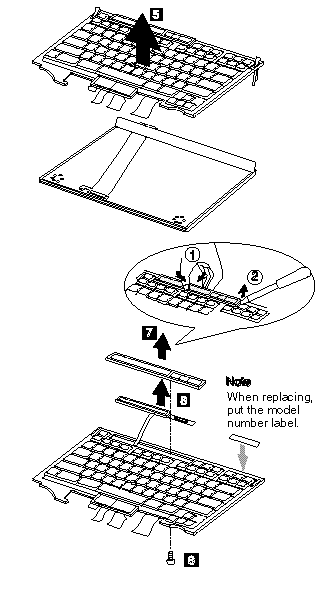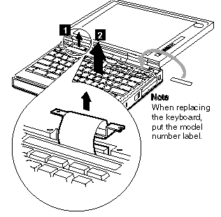 Note : When replacing the keyboard cable, place the cable correctly as shown by the artwork in the circle.