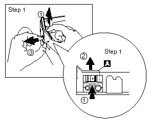 Note : If the security latch (A) is at the left position, push and slide it to the right position (unlock).