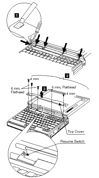 Note : When replacing the top cover, be careful not damage the resume switch shown in the figure.