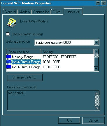 To change the COM port setting for the internal Lucent Technologies modem, follow the procedure below: