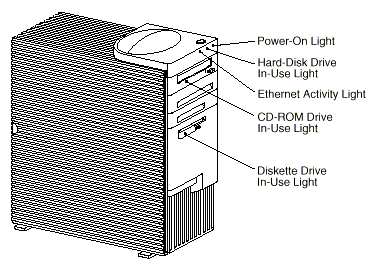 Hard Disk Drive In-Use Light: This light comes on when the server is accessing a SCSI hard disk drive. If this light remains illuminated, it might indicate that either the SCSI bus or the system microprocessor has stopped.