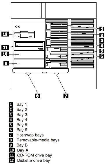 - Bays A and B come without a device installed. These bays are for 5.25-inch, half-high, removable-media drives, such as tape backup drives. Bays A and B