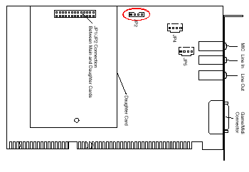 On the sound card locate socket JP2, circled in red below, and connect the other end of the audio cable.