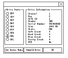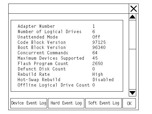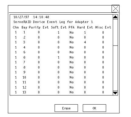 Monitoring Event Logs: The ServeRAID controller stores, in the event logs, information concerning various unexpected events. There are three types of event logs: a device event log, a hard event log, and a soft event log.